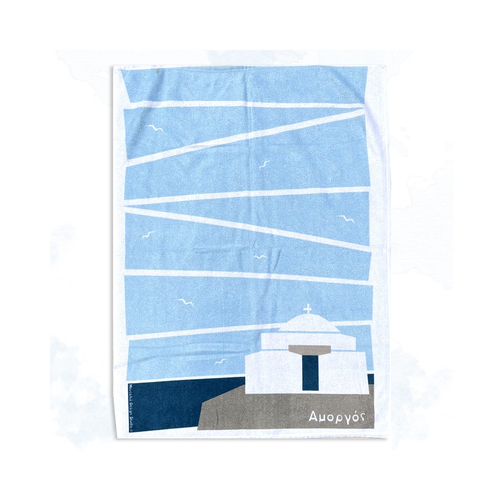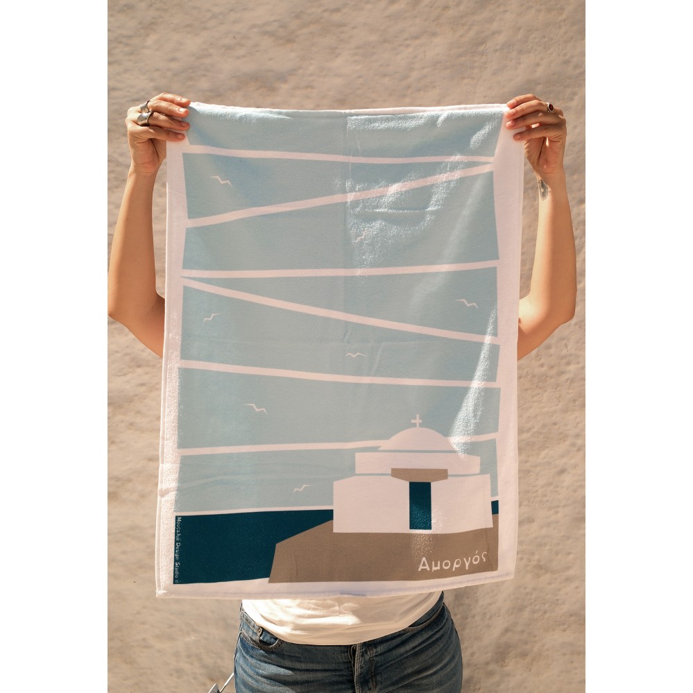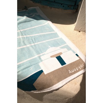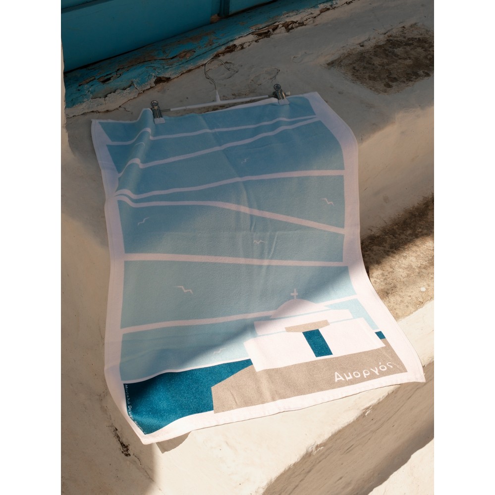The “Agia Anna – Amorgos” towel brings the calmness of a Cycladic afternoon straight into your home.